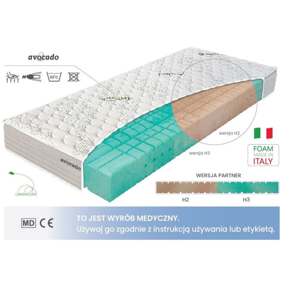 – wersji Partner, która łączy obydwie twardości na jednej powierzchni całego materaca.